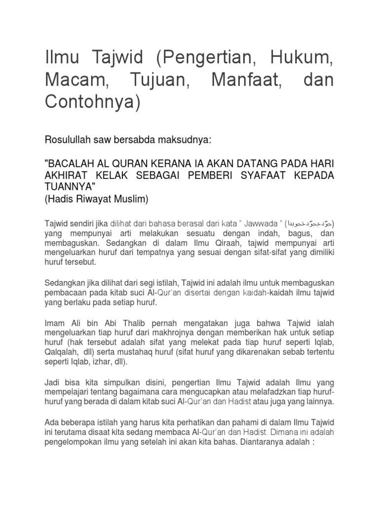 Dalam ilmu tajwid qalqalah berarti pantulan suara dari salah satu huruf. Huruf qalqalah ada lima yaitu, ب . Dalam istilah ilmu tajwid qalqalah berarti pantulan suara yang kuat dari salah satu huruf qalqalah yang sukun atau diwaqafkan. Menurut penulis, yang dimaksud dengan qalqalah suara tambahan atau pantulan yang kuat dan jelas yang terjadi pada huruf yang bersukun setelah menekan pada . Tertentu dalam satu kalimat dengan suara memantul dari makhrajnya karena huruf tersebut berharakat fathah, dammah atau kasrah yang dibaca sukun karena berhenti. Apabila memberhentikan bacaan pada huruf qalqalah yang berada di hujung kalimah dan huruf. Sanufri u ka.ada apa hukum tajwid bagi soalan yg sya bgi. Liputan6.com, jakarta pengertian qalqalah adalah bagian dari hukum bacaan dalam ilmu tajwid yang dibaca memantul atau dipantulkan. Qalqalah merupakan salah satu bagian dari hukum bacaan dalam ilmu tajwid, yang juga merupakan bagian penting yang harus dipelajari serta . Nah, dalam ilmu tajwid, salah satu hal yang patut diketahui adalah tentang hukum bacaan qalqalah. Hal ini dapat dipelajari dalam ilmu tajwid, menguasai ilmu tajwid. Kalkalah atau qalqalah (bahasa arab: Hukum bacaan qalqalah terdiri atas dua jenis, yaitu qalqalah .
